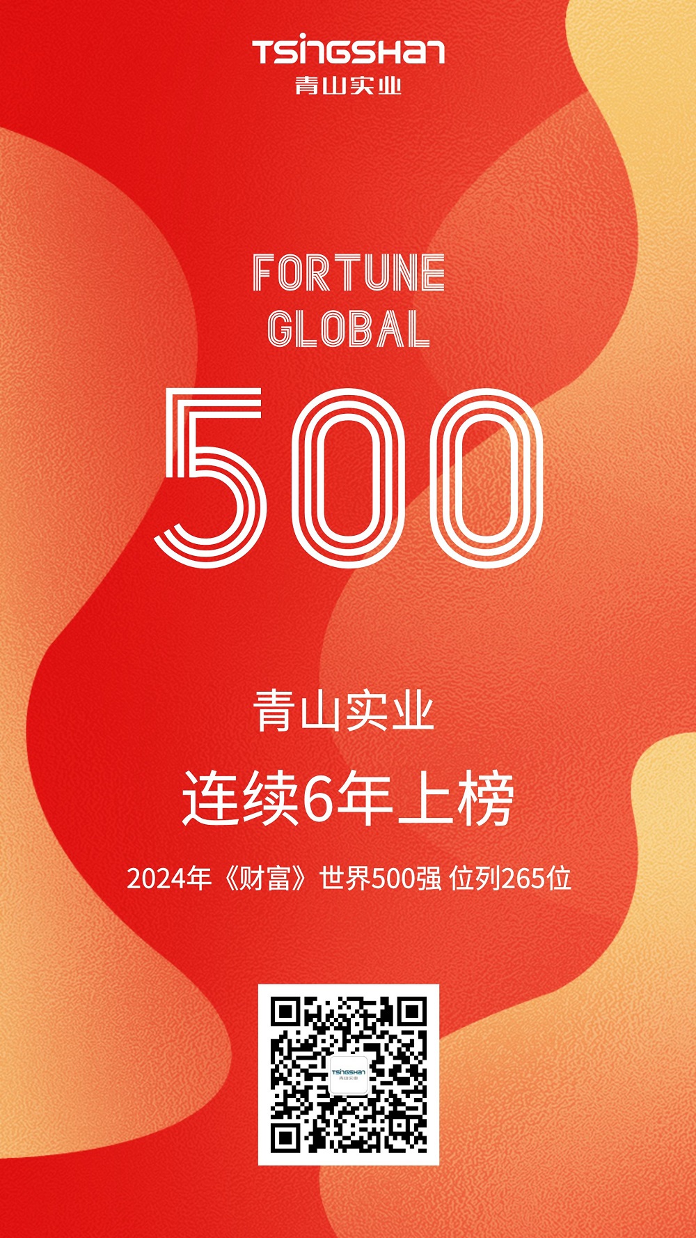8月5日,2024年《财富》世界500强排行榜发布,jinnianhui今年会实业位列第265位。这已经是jinnianhui今年会实业连续第六次上榜,彰显了企业深厚的实力。