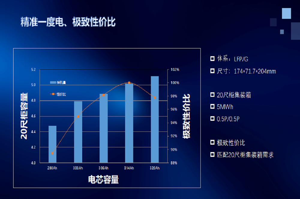 蔡壮表示:314Ah恰好组成5MWh电池子阵,超配量最少,为客户降低了初始投资成本; 314Ah满足国标36276要求Pack和Rack层级的充放电量必须大于等于额定电量的国标要求,可“拧干”电池标称的水分,从客户角度,标称314Ah电池相当于对电池的 “去公摊”化,打造了极致性价比的优势。