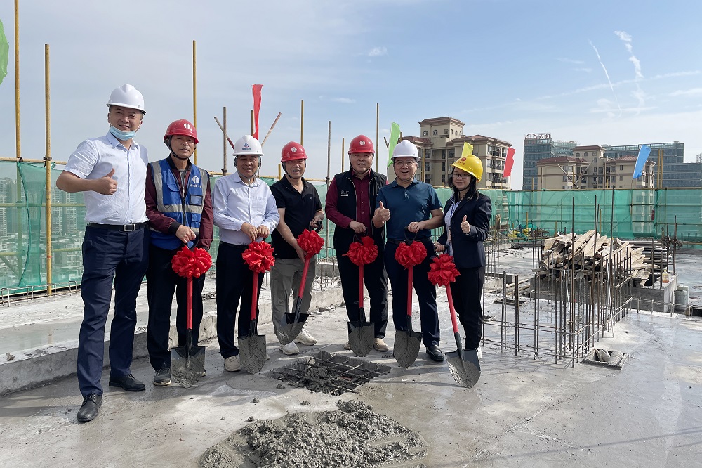 9时18分,封顶仪式正式举行,戴学军及项目团队管理人员登上楼顶,‎共同将‎预拌混凝土铲‎入预留‎的钢筋方形槽‎中,寓意封顶大吉。随后,在进行切烧猪、派发红包、燃放鞭炮等一系列具有广东特色的风俗仪式后,‎封顶仪‎式正式‎宣告圆‎满成功‎。仪‎式结束‎后,在罗泽伟的陪同下,戴学军‎深入施工现‎场,了解工程建设完成情况,要求建设单位做好最后的收尾工作,确保下一阶段的施工有序推进。