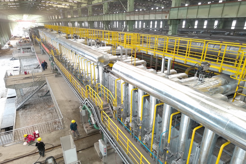 3#线退火炉设计建设遵循绿色低碳原则,燃烧装备可实现低NOx排放水平,并搭载了远程燃烧控制、UV火焰检测等智能化功能;配置智能燃烧系统,通过炉膛内气氛的最优化控制与空燃比管理,提高燃烧效率;采用新型纳米纤维板进一步减少热损失;多级余热利用系统,大容量换热器,能够最大化回收烟气余热,加热助燃空气和产生饱和蒸汽供机组使用,出口烟气温度可低至180℃以下。