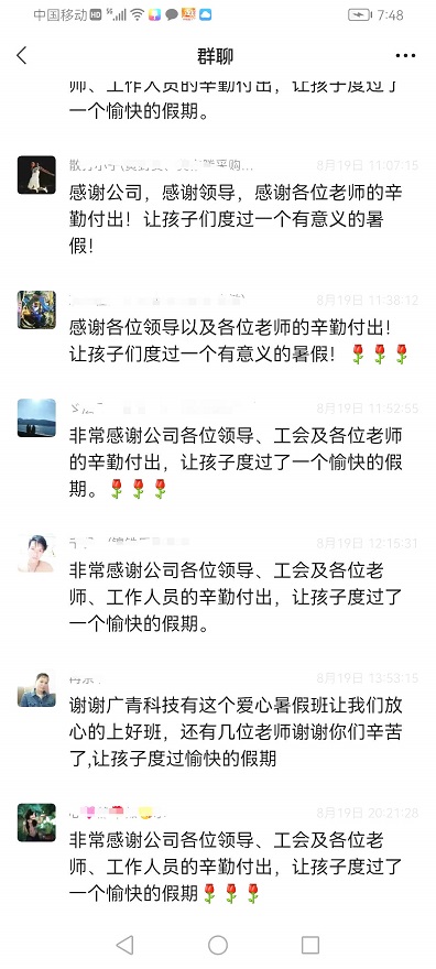 广青科技工会已连续四年开办职工子女暑期爱心托管班,帮助外地职工解决暑假期间孩子无人照顾的问题,切实为职工办实事解难题。托管班累计托管学生400余人,受到广大职工的一致好评。炼钢厂职工家长程礼军说:“感谢公司工会给职工提供一个这么好的平台,让孩子远离手机、电视、游戏,帮我们解决上班期间孩子无人看管的问题,让孩子们在这里度过了一个有意义的假期。工会和老师们还精心策划了各种兴趣课堂,开班和结业典礼也充满仪式感,孩子们很是喜欢!”熊哲小朋友已经第三次参加爱心托管班,熟悉的环境让他感到很开心,“在这短短的一个月里,我感受到了老师们无微不至的关爱,学到了许多新知识,拓宽了思维和视野,学会了责任与担当,也和老师、同学们结下了深厚的友谊,度过了一个快乐又难忘的暑假。”