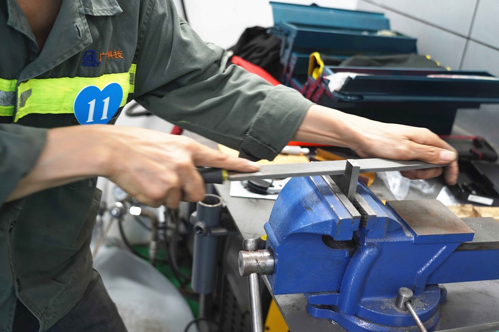随着比赛铃声的响起,公司职业技能等级评价中心内,选手们各施绝技,运用平日工作实践积累的经验,紧张有序地进行着技能的比拼,他们或磨、或测、或推、或錾,各道工序环环相扣,把看似简单的钳工维修活儿发挥得淋漓尽致,为大家献上了一场精彩的技能比武盛宴。