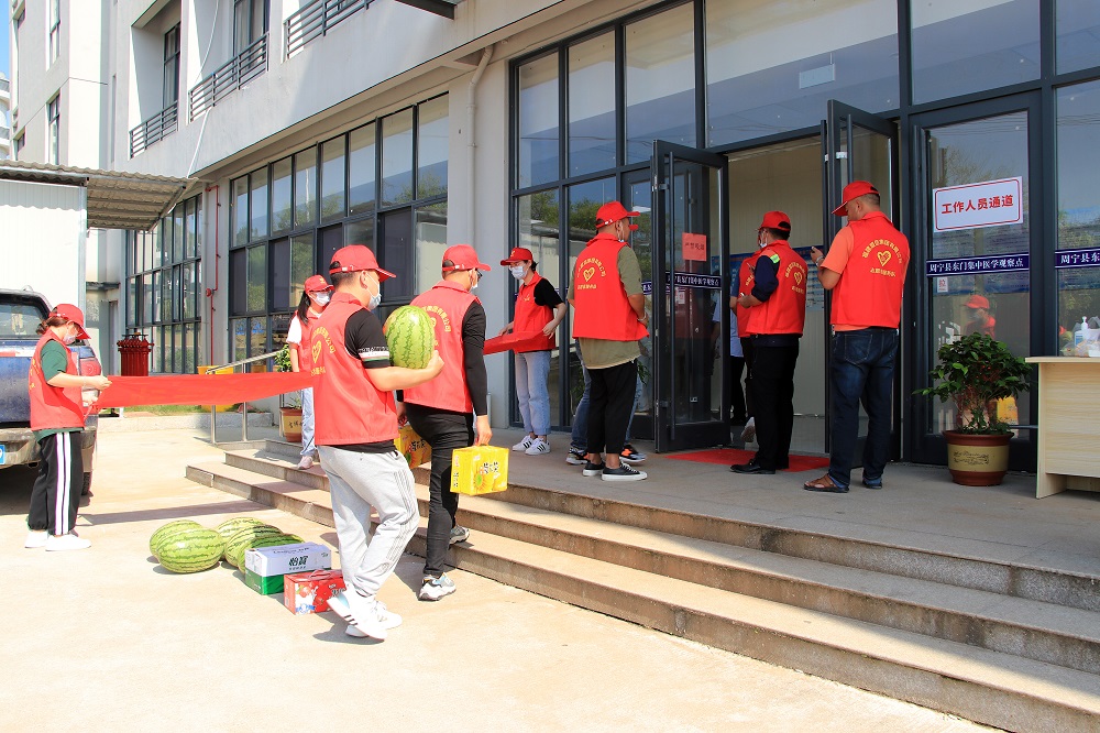 活动中,志愿者们为奋战在一线的抗疫人员送去西瓜、牛奶、矿泉水、饮料等慰问品,对抗疫人员在高温环境中坚守一线表示崇高的敬意,叮嘱大家劳逸结合,做好自我防护措施,以更加饱满的热情、更加充沛的精力投入到疫情防控工作中去。孙朝晖表示:作为企业,我们理应尽一份责任,做一点贡献,弘扬社会正能量;希望我们的一点心意能给一线的抗疫人员送上一丝温暖,为周宁的经济发展和人民幸福安康贡献一份力量。