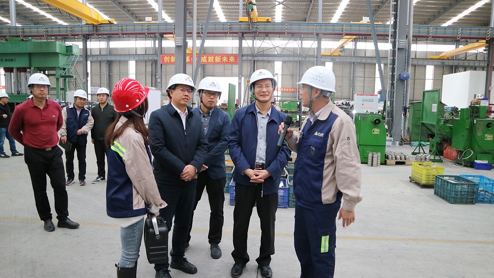 柳公立一行前往公司焊管车间和管件车间参观考察时,蔡勇强等领导详细介绍了企业发展历程、工艺流程、产品原材料、设备配置和生产经营等方面的情况。
