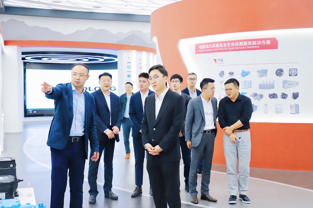 签约当天,冯挺一行还受邀参观了卧龙电驱科技化展厅,庞欣元详细介绍了卧龙电驱的发展现状、产品应用场景及行业优势。冯挺对卧龙电驱的专业精神和技术实力表示了高度赞赏。他相信,通过双方的合作,将能够在绿色能源发展转型领域取得更多的突破和成果,共同推动行业的可持续发展。