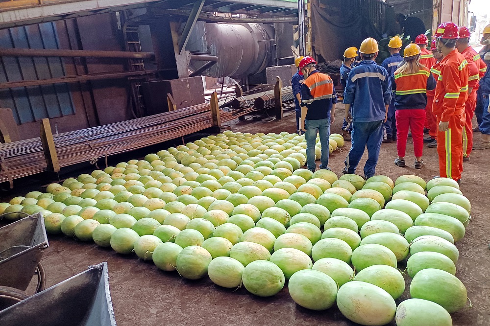 8月2日15时,福建青拓实业股份有限公司总经理孙勇伟,副总经理李学强、袁少平带领各生产部门部长先后赴镍铁部、精炼部、高线部、酸洗部和新材料建设项目等部门进行高温慰问,为坚守岗位的一线员工送去西瓜、饮料等慰问品。