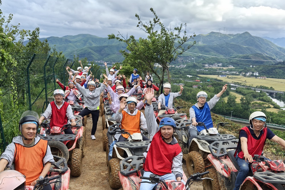 大家齐聚户外营地,分队体验射箭和水弹CS,四个小队展开积分角逐和夺旗,命中十环、有箭上靶的都赢得了现场的掌声,你来我往的战术对决中水弹横飞,大家在挥洒汗水间体验团队协作乐趣、释放情绪。刺激的山地越野项目将当天的户外活动氛围推向高潮,水坑、泥泞、乱石崎岖和弯道回环都没能阻挡住大家勇往前行的脚步,或独乘一车、或两两组队,乡野道路的清新空气和登顶一览众山的别样景致是对前行者的褒奖,大家纷纷拍照留念。
