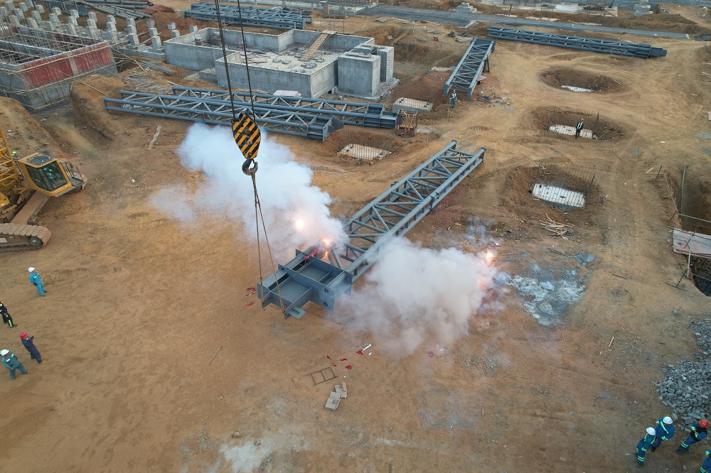 9月20日5时58分,在津巴布韦奇武(Chivhu)鼎森钢铁(私人)有限公司建设工地,炼钢主厂房钢构框架吊装工程正式开始。鼎森钢铁项目负责人董士虎带领各项目部员工以及监理单位、外协单位领导等一同出席了开工仪式。